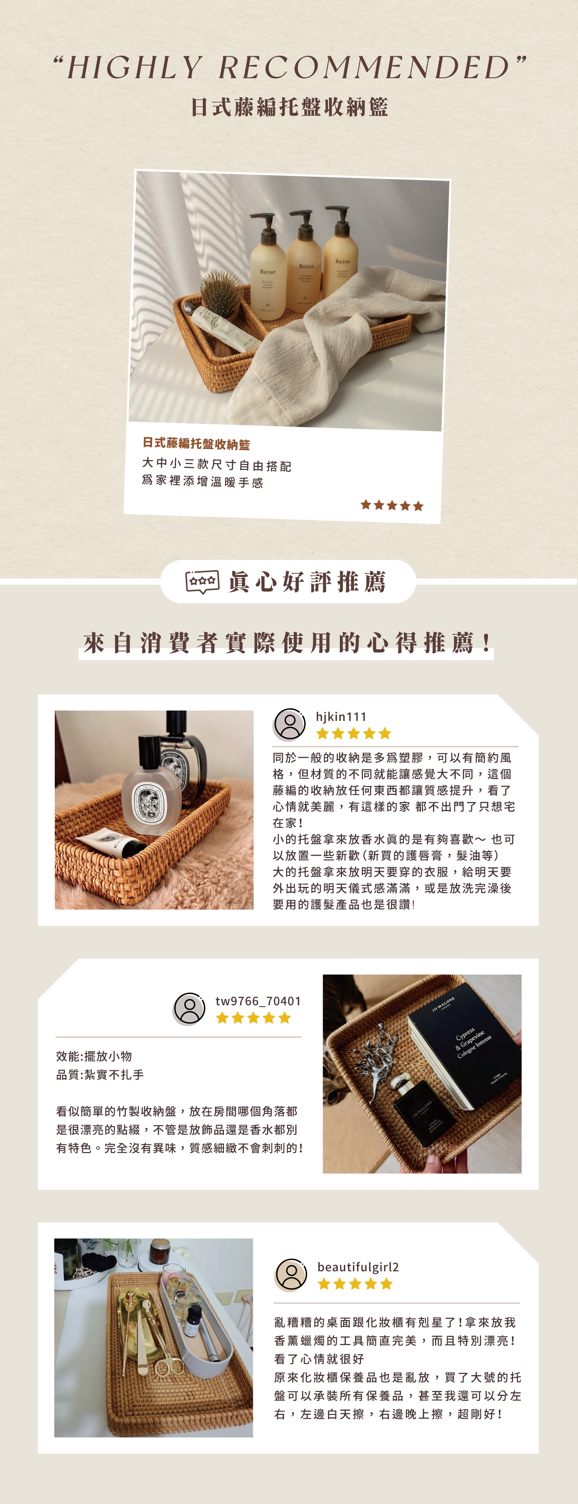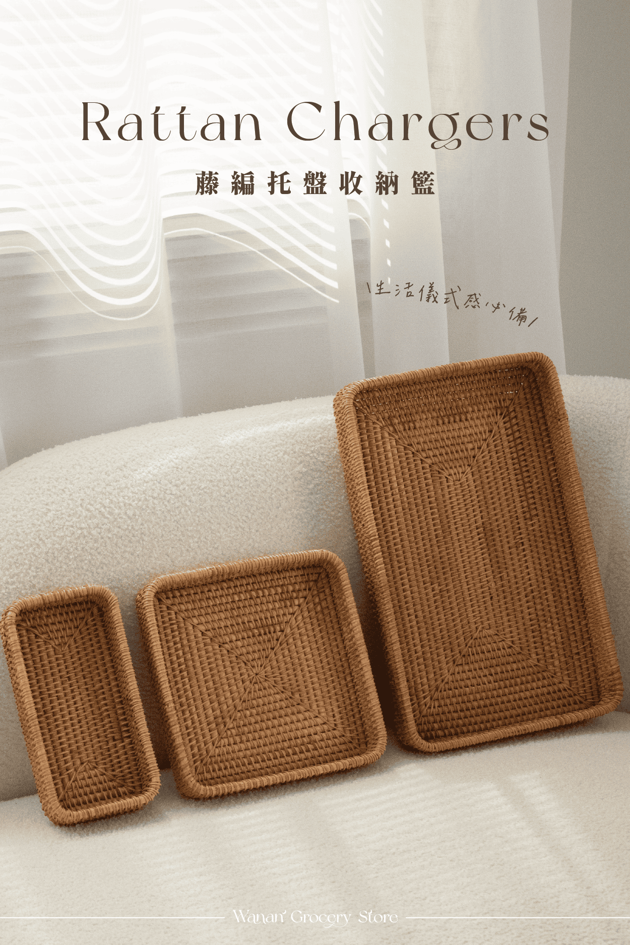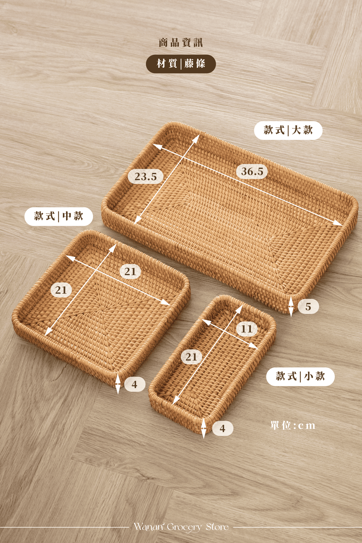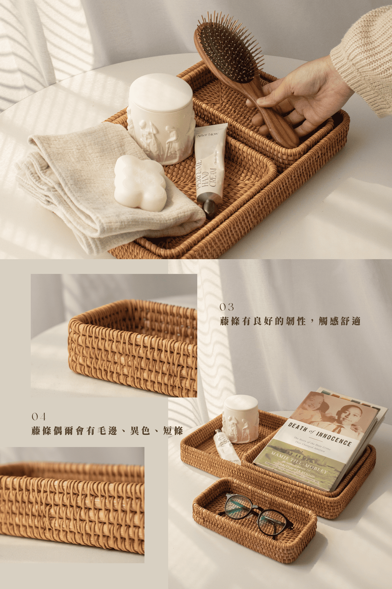 天然藤編,細緻編織,三種尺寸靈活搭配
