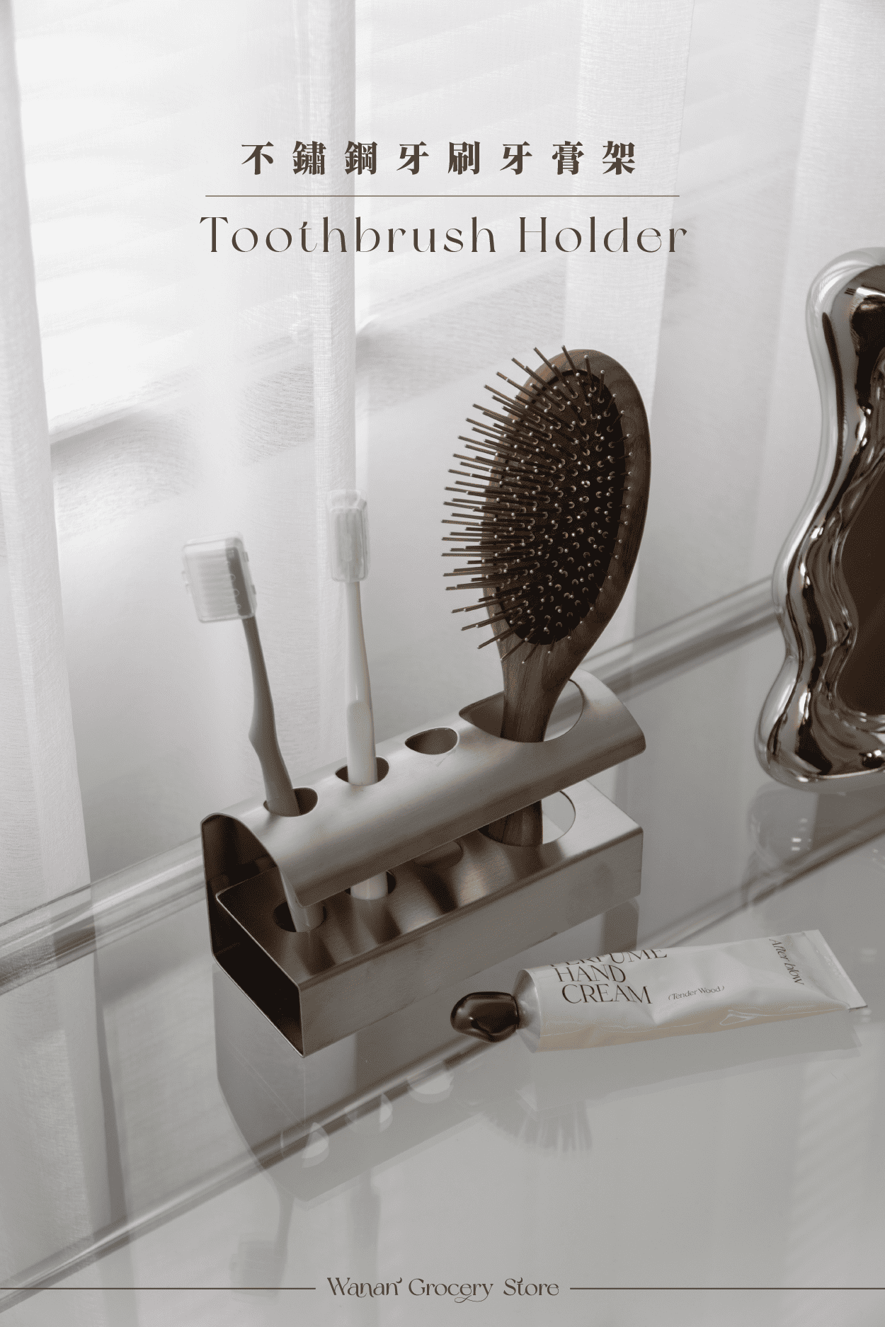 • 大孔洞可收納電動牙刷!