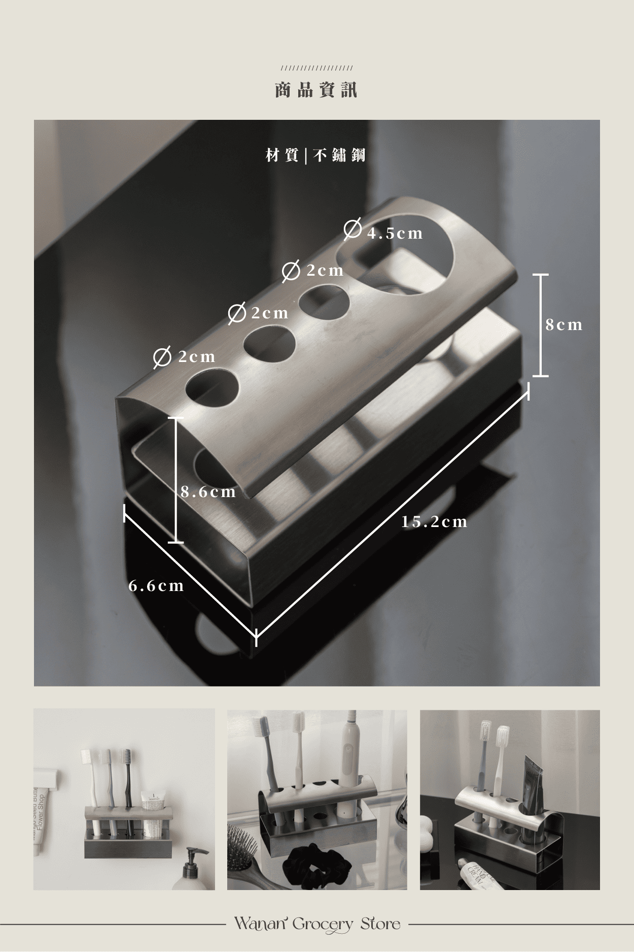 • 精準收納,不雜亂| 大孔洞可放電動牙刷,牙膏、牙刷各有專屬位