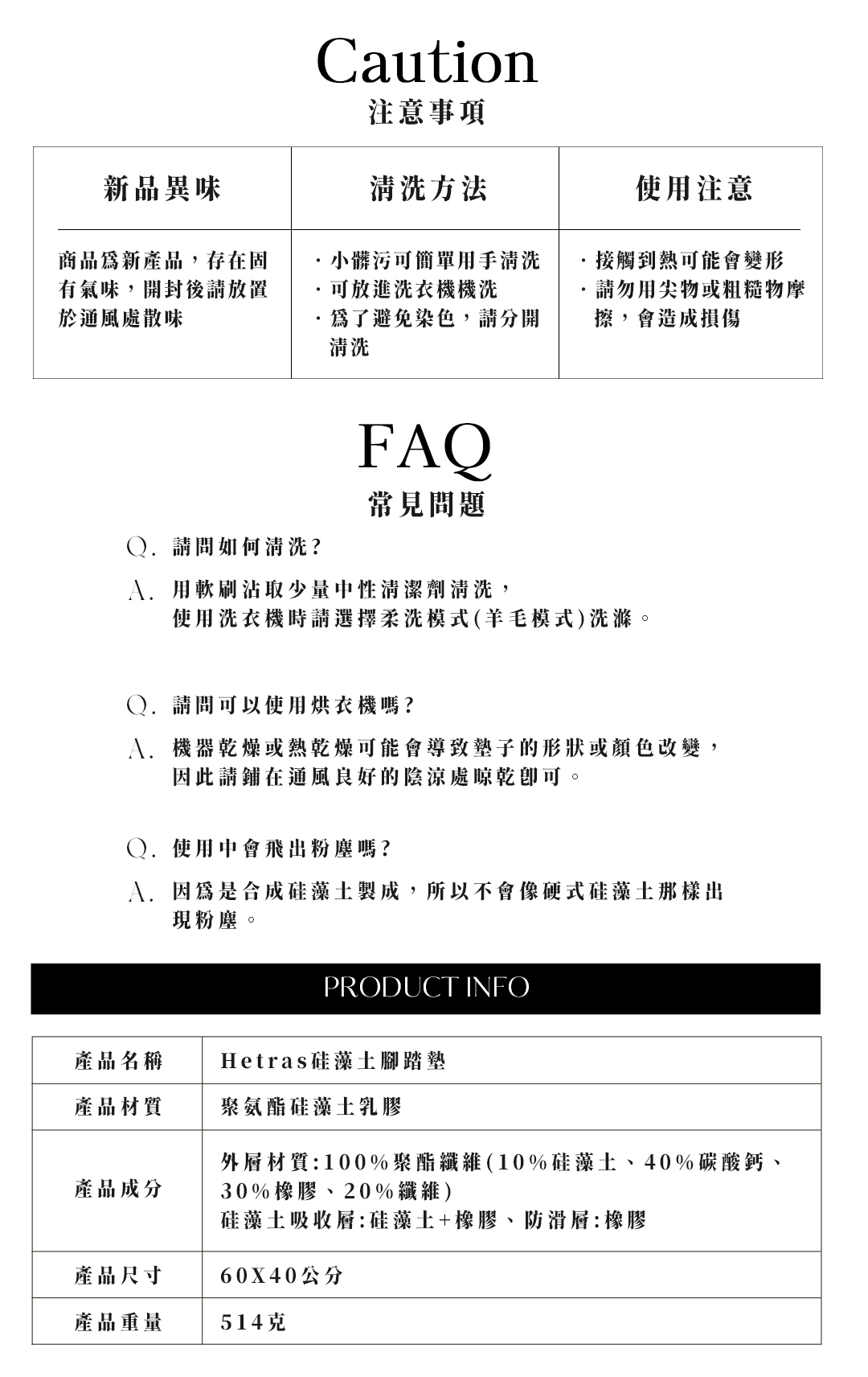 • 材質 聚氨酯硅藻土乳膠