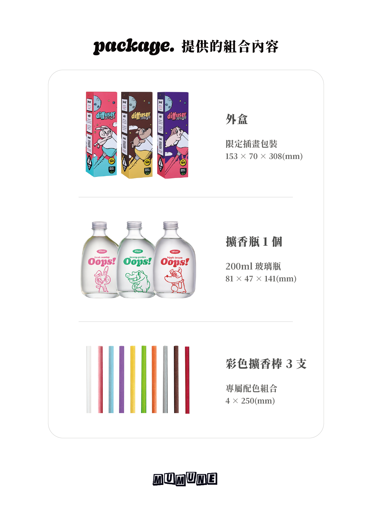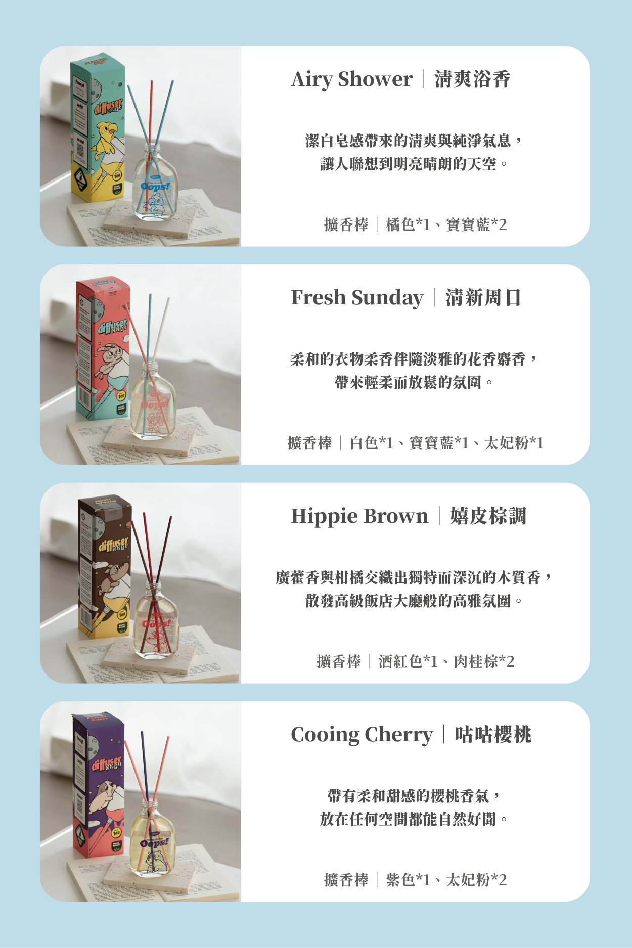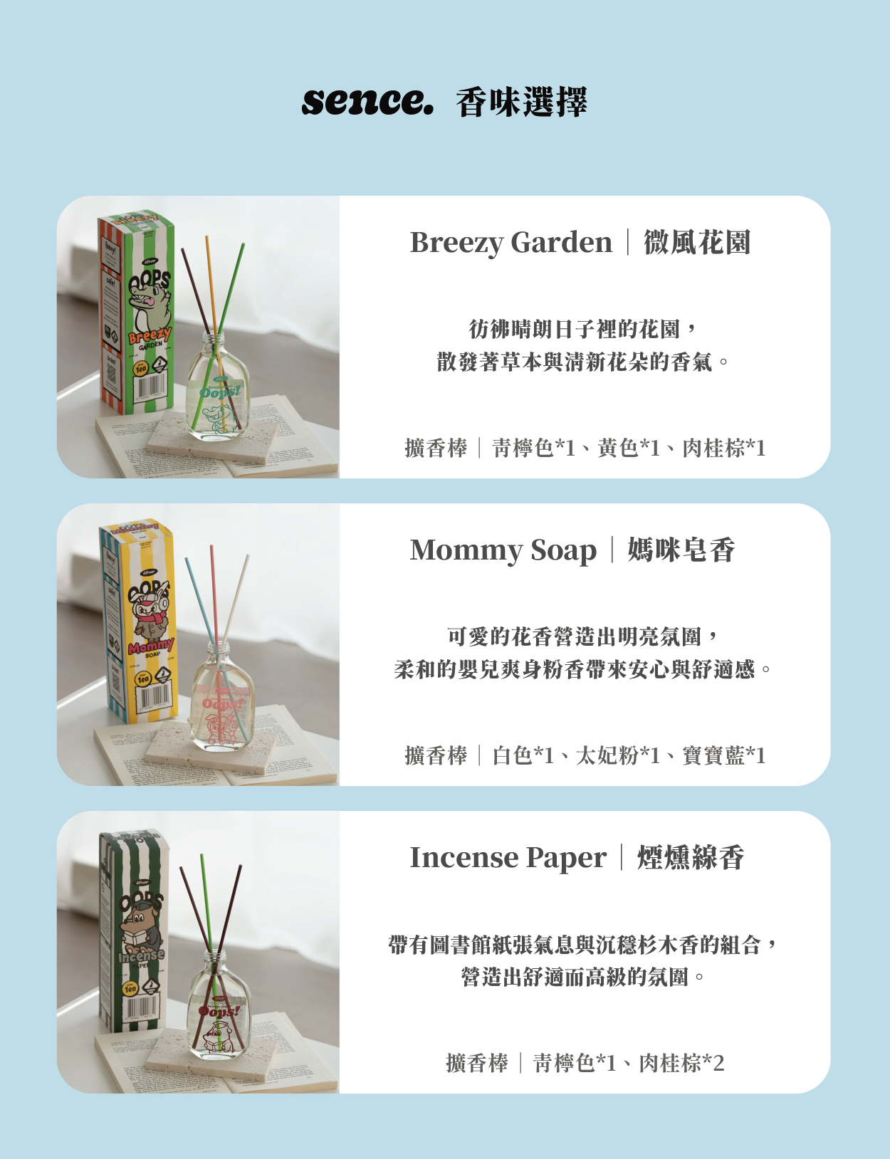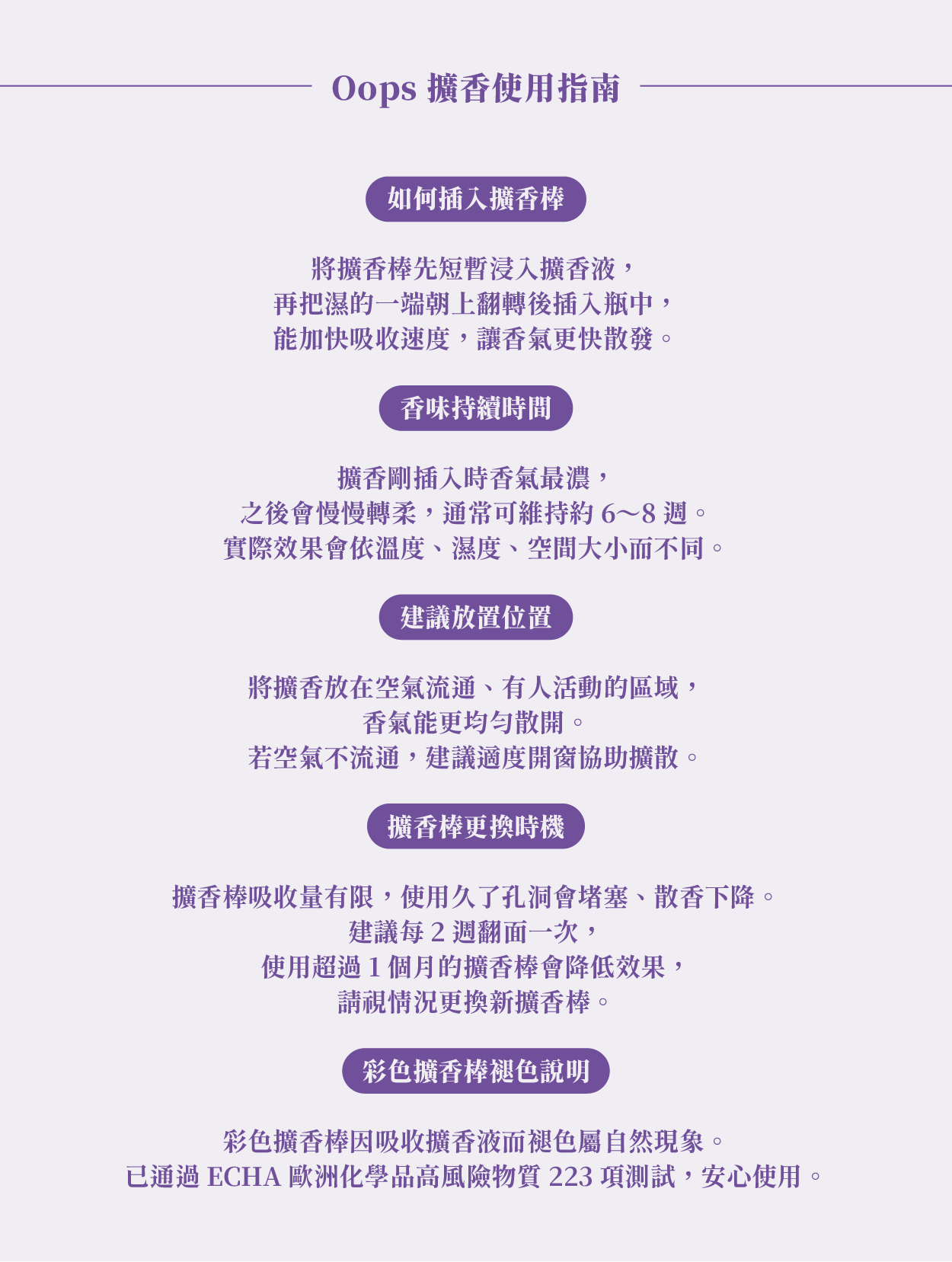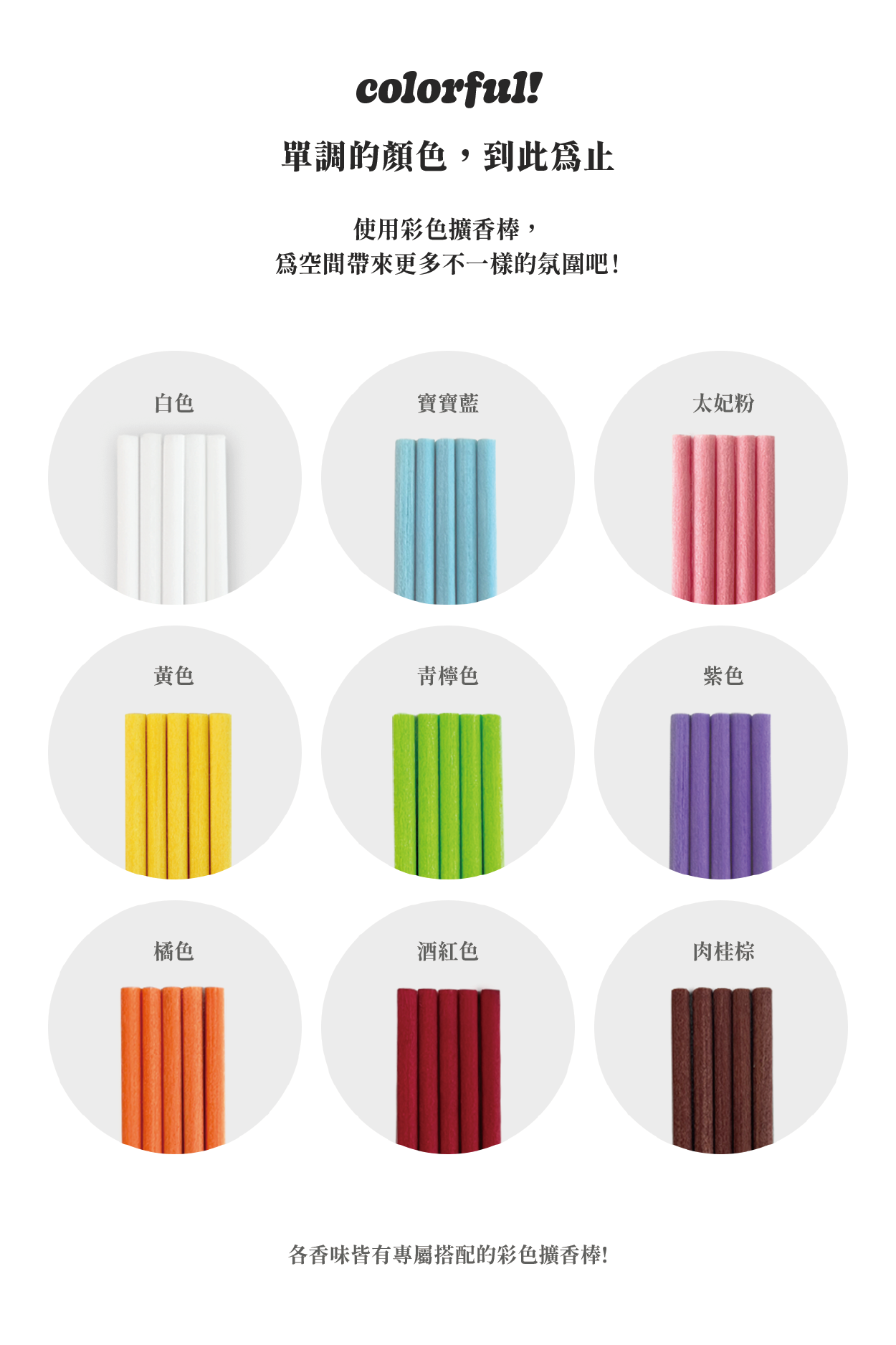• 附贈彩色擴香棒3支(每款味道附贈的顏色不同唷)