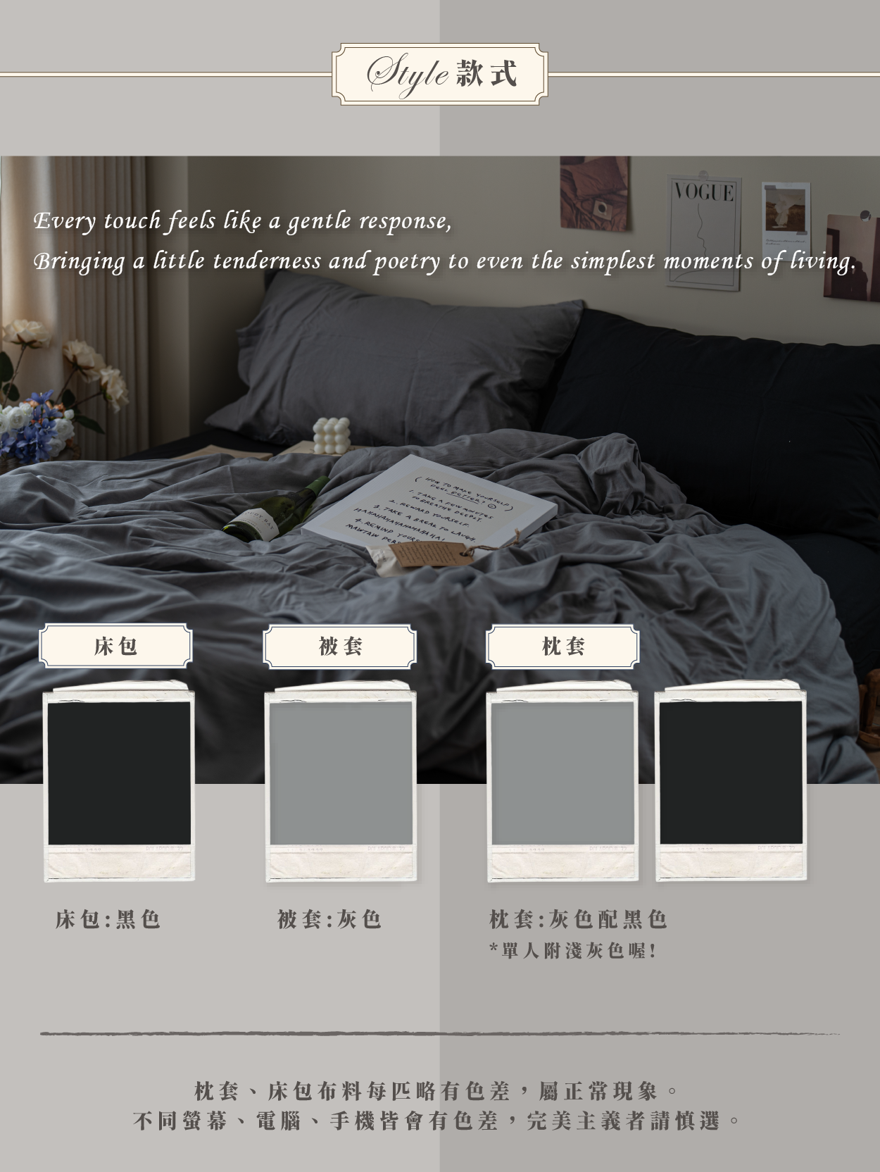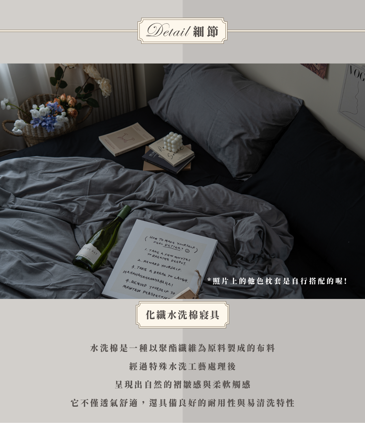 (單人尺寸枕套附淺灰,雙人尺寸枕套附淺灰一入、純黑一入)